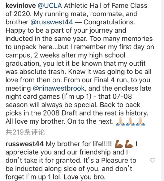 威少乐福入选ucla名人堂,乐福IG深情告白威少,少爷调皮回应