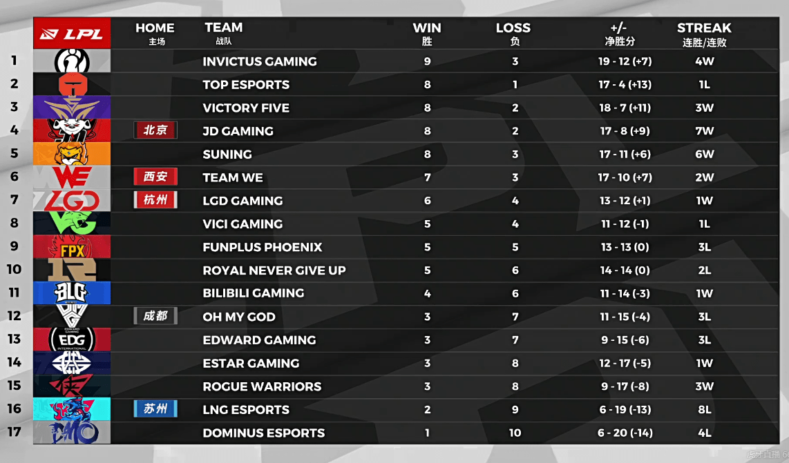 而在RNG输掉了这一局比赛之后,目前已经5-6战绩的他们可以说是局势相当不利了。因为在这一场比赛过后,RNG还要将分别面对LGD、DMO、TES、BLG以及RW。而如果他们想要稳进季后赛的话,在接下来的5场比赛中就必须要赢下4场比赛,保持9胜的战绩结束常规赛。