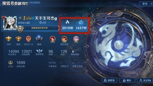 可杰的游戏内这两项数据,合计已经突破了4300万大关,是当之无愧的全服第一,在新赛季来临之后,可杰的两项数据再次创下了一个新高。就连KPL中两大职业选手,刺痛和梦泪都比不上他。虽然,可杰因为切后台事件被封禁了,但要论这游戏内的人气,还是当之无愧的大哥啊。不知道大家认为,这个游戏内的热度和人气,能够代表真正的人气吗?欢迎留言评论。