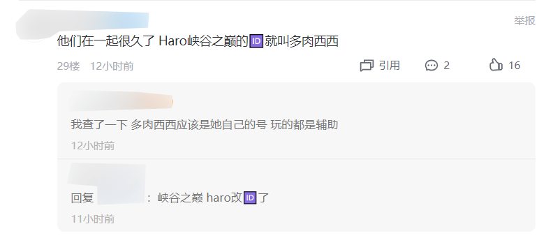 这时候有懂行的吃瓜群众就站出来猜测了一下事实,很有可能是haro和西西的感情发生了破裂,因为之前就有消息传出haro和西西在一起几个月了,甚至haro还在手臂上纹了西西的生日,而且haro峡谷之巅的ID就是多肉西西,现在西西公然在社交平台说出这种话很有可能就是感情发生了破裂才导致的。