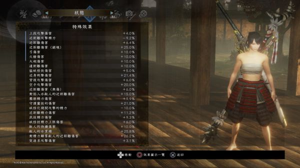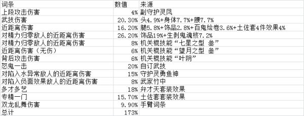 再比如机关棍技能树里,有个技能叫做“七星之型”,效果是提升对精力为0敌人的伤害,这个没有写在特殊效果栏中,计算的时候也是同样方式叠加。