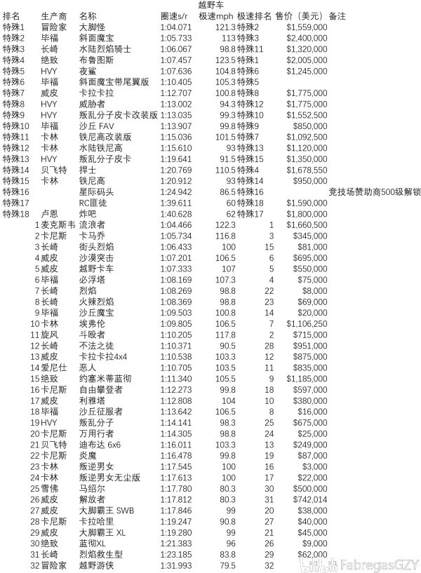 《GTAOL》中有各种款式各种性能的越野车,那么这些越野车的排行是怎么样的呢?现在为打家带来“FabregasGZY”分享的《GTAOL》夏日特辑版本CCGP越野车排行,一起来看看吧。