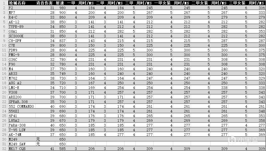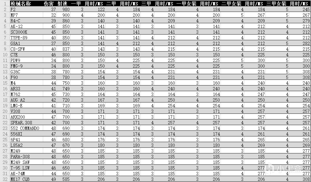 进攻方TTK一览