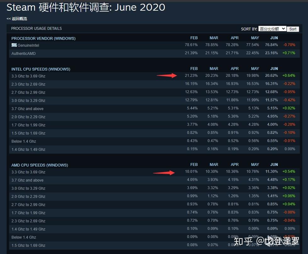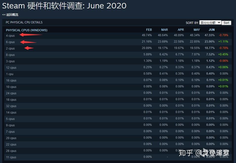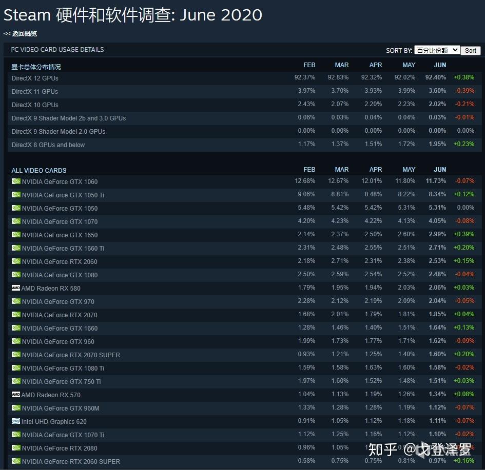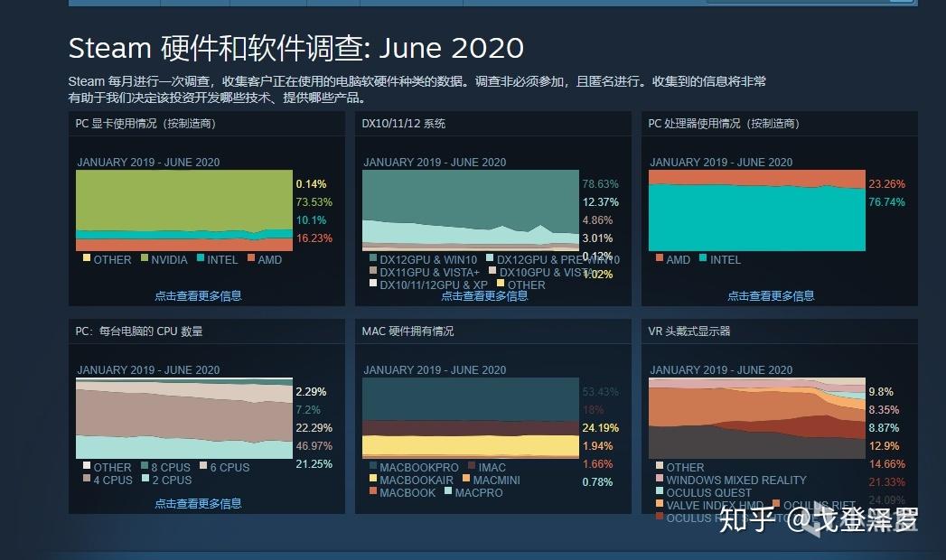 根据steam上2020年 六月份,也就是上个月的配置占比如图所示: