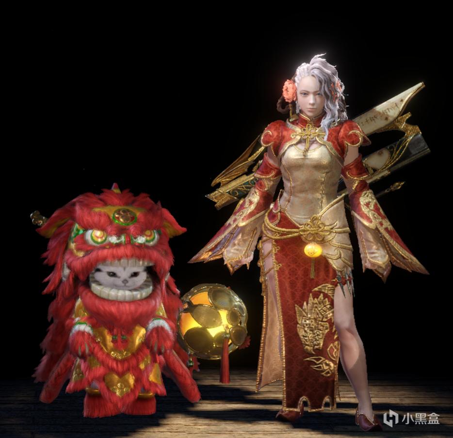 首先就是大名鼎鼎的旗袍套了。比起风火轮,我更喜欢它之前的名字,【乌龙】套。女性套旗袍红金配色,上面有轰龙和迅龙的纹饰,既喜庆又怪猎本土化。