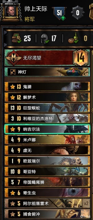 诶~这就很难受~在你r1输给对手的情况下,对面通常会考虑跟与不跟。但是在r7以下玩家们非常容易上头,很容易出现在r2手牌全部打光,然后对面手里还有1卡,即亏卡输r2。兄弟们请记住昆特牌中,卡差是一个非常重要的资源,这种资源最好别给你的对手,千千万万不能上头,上头必输!