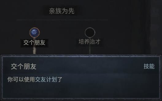 学习了这个技能后就有 交友(密谋) 这个选项了。