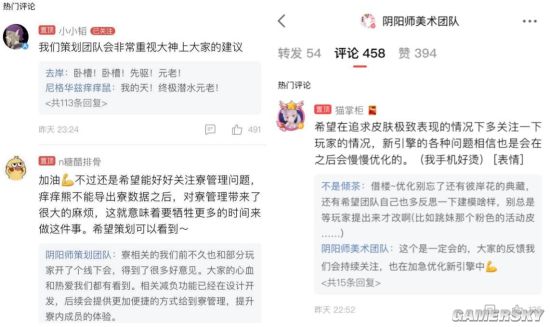 众多玩家纷纷在动态下留言,提出自己的需求和建议,《阴阳师》制作人@小小韬 也在评论区中表达了对玩家反馈建议的诚意。希望通过在大神里的良好互动,玩家针对游戏玩法、皮肤等的种种建议能够被及时看到,实现游戏官方与玩家的充分、全面沟通。