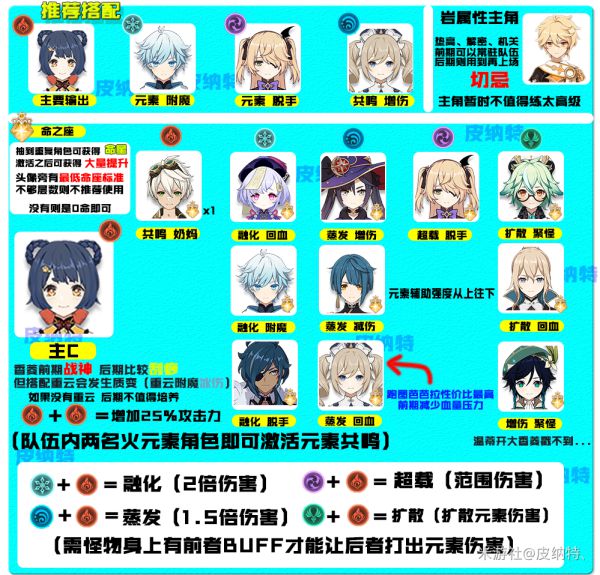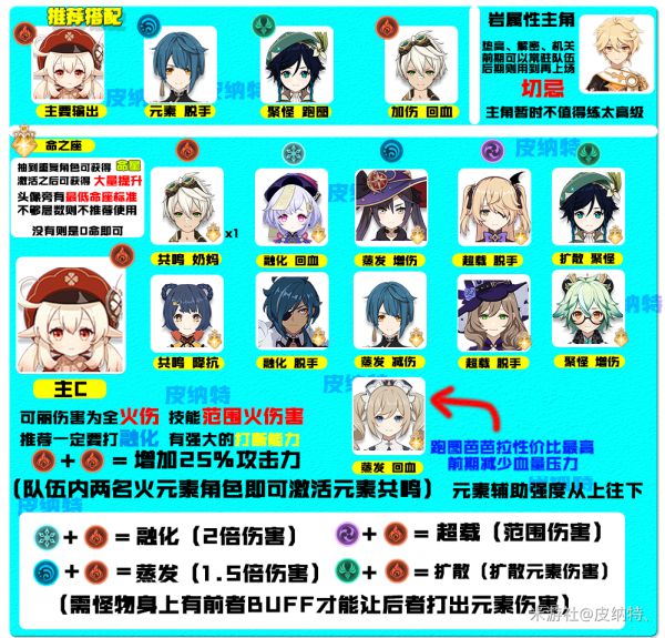 每张图片中都有详细的搭配以及元素伤害和元素共鸣