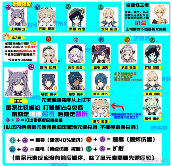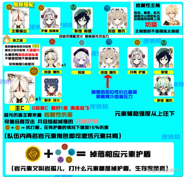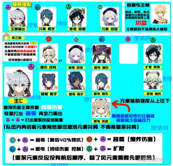 注意:辅助角色均为强度从上往下,如果没有向下顺位即可