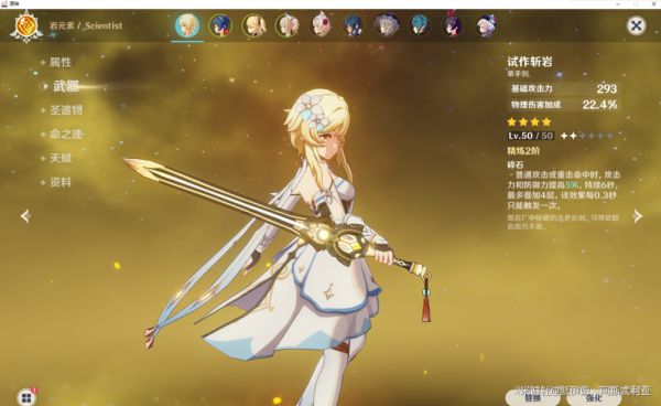岩主武器没满60,皇女两个3星圣遗物且没凑够4个战狂。