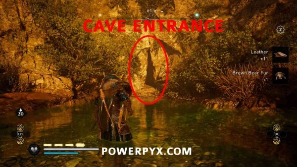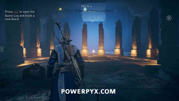 首先你会看到一些小小石台,然后跳入水池,潜入水底并游到一个可攀爬的位置。跳过废墟之后会来到另一个石台区。在【米尔丁的洞窟】的尽头有11个石柱,每个石柱上都有个插槽,将11块碑文分别插入石柱中。