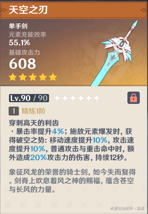 这里还是外带提一下风鹰剑,风鹰剑一般是追求极致增伤下的带法,风鹰剑可以提供最高的白字面板,但是丢掉的充能得从圣遗物上抠出来,如果班尼特要当作常用奶妈玩并不是非常推荐,如果充能不上来还是难受的。大佬慎重选择就好。就和琴风鹰还是天空的选用一个道理。