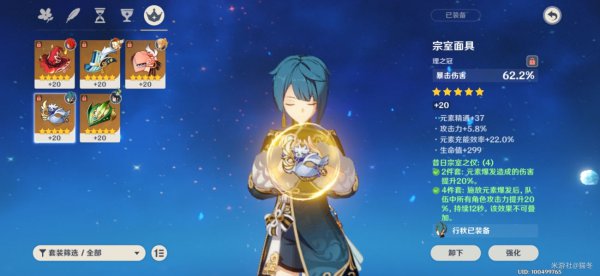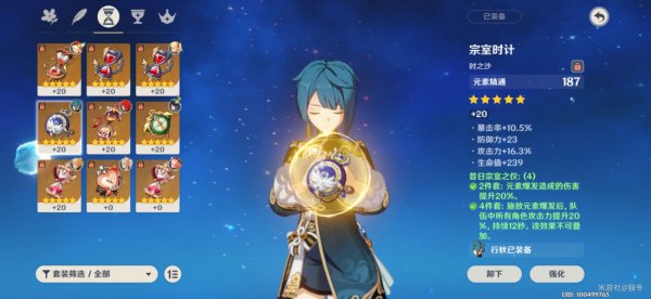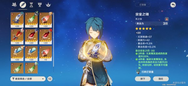 主C向的行秋呢,按这套圣遗物来搭配一点问题没有,精通值用词缀带点就可以了,不用在意多少。