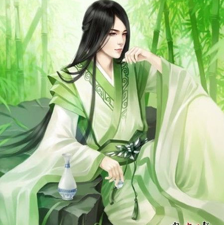 一习白衫自然的盖在溪石上,如瀑布一般的黑发随风飘扬着。头顶系着一顶银色头冠,一支倘若飞腾般的龙型玉簪将他清新的气质完美的烘托了出来。