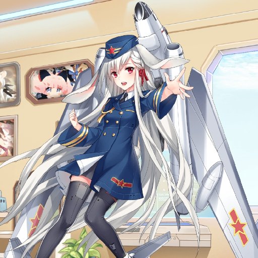 这位少女自然就是轰-6了,少女有着一头长达脚踝处的白色长发,左额处的一缕头发在太阳穴处扎了个短短的麻花辫,麻花辫只绑到脸部,下面用红绳绑着,红绳缠了一圈又一圈,把脸部以下的头发收束成一缕,刘海向右斜,遮盖住了光洁的额头,精致的小脸,两颗红宝石似的大眼睛此时正在闪闪发光。少女身着一身深蓝色的军服连衣裙,裙摆处有一颗五角星,两只宽大的袖口边缘上各有两条金边,衣领右边还横挂着一根金色的饰带,更为少女的增添了一分英气。军服内穿着一件白衬衫,从军服衣领的开口处可以看到露出的小半条黑色领带。细长匀称的两条大腿上覆盖着长至大腿处的黑色长筒袜,露出绝对领域,长筒袜上有着像钢板接口处一样的花纹,透露着金属质感,脚上穿着一双圆头小钢靴。少女最引人注目的地方莫过于军帽旁边耷拉着的一对兔耳了,这对兔耳强行给英气满满的少女增添了一份可爱。