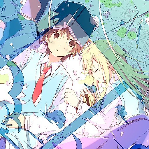 男孩被带上了一座岛,那里拥有湛蓝的天空,蓝的透彻心灵,仿佛没有遭受过一丝污染;粉色的“空气”,粉的洞彻心头,仿佛这美好没有遭受过一点侵扰……当他们驻足在一棵巨大的樱花树下,“她”正在蓬勃开放。这一瞬间,整个世界的时空都仿佛停止,只剩下樱花瓣在风中曼妙的飘浮。此时男孩眼中第一次不再只有灰暗,代表五彩斑斓的“玉蟲色”映入男孩眼帘;而“玉蟲色”似乎也是这世界本该拥有的颜色。