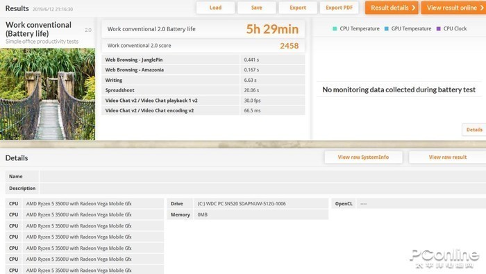 全新惠普战66二代 AMD版内置3芯 45Whr高密度长寿命电池,通过PCMARK 8的工作模拟续航测试,最终获得了5小时29分的成绩,基本可以坚持半个工作日或者一个晚上断电下的高强度工作。