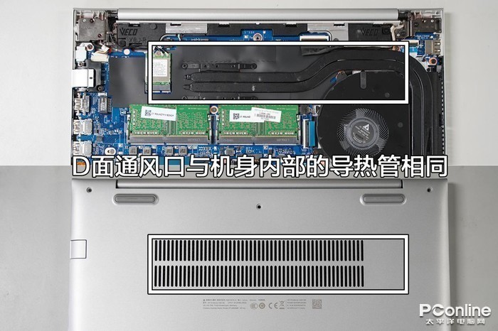 这是因为全新惠普战66二代 AMD版搭载了双热管,相较于大部分轻薄本单热管散热的配置,在散热效率上有很大的提升。并且通风口与热管位置相同,进一步增强了散热效率。