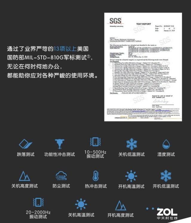 惠普战66全系经过美国国防部MIL-STD-810G军标测试,其中包括跌落测试、功能性冲击测试、10-500Hz振动测试、关机低温测试、湿度测试、关机高度测试、防尘测试、热冲击测试、开机高温测试、开机低温测试、20-2000Hz振动测试、关机高温测试以及开机高温测试等。旨在为用户提供最为安全、可靠的产品。