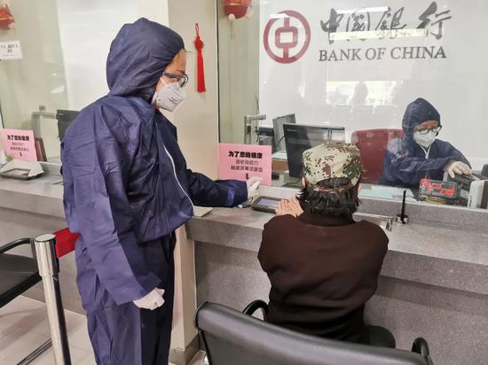 ◇ 26日,武汉市11家银行近百个营业网点恢复营业,市民进入银行网点办理业务前,需出示健康码绿码、测量体温、实名登记及手部消毒。