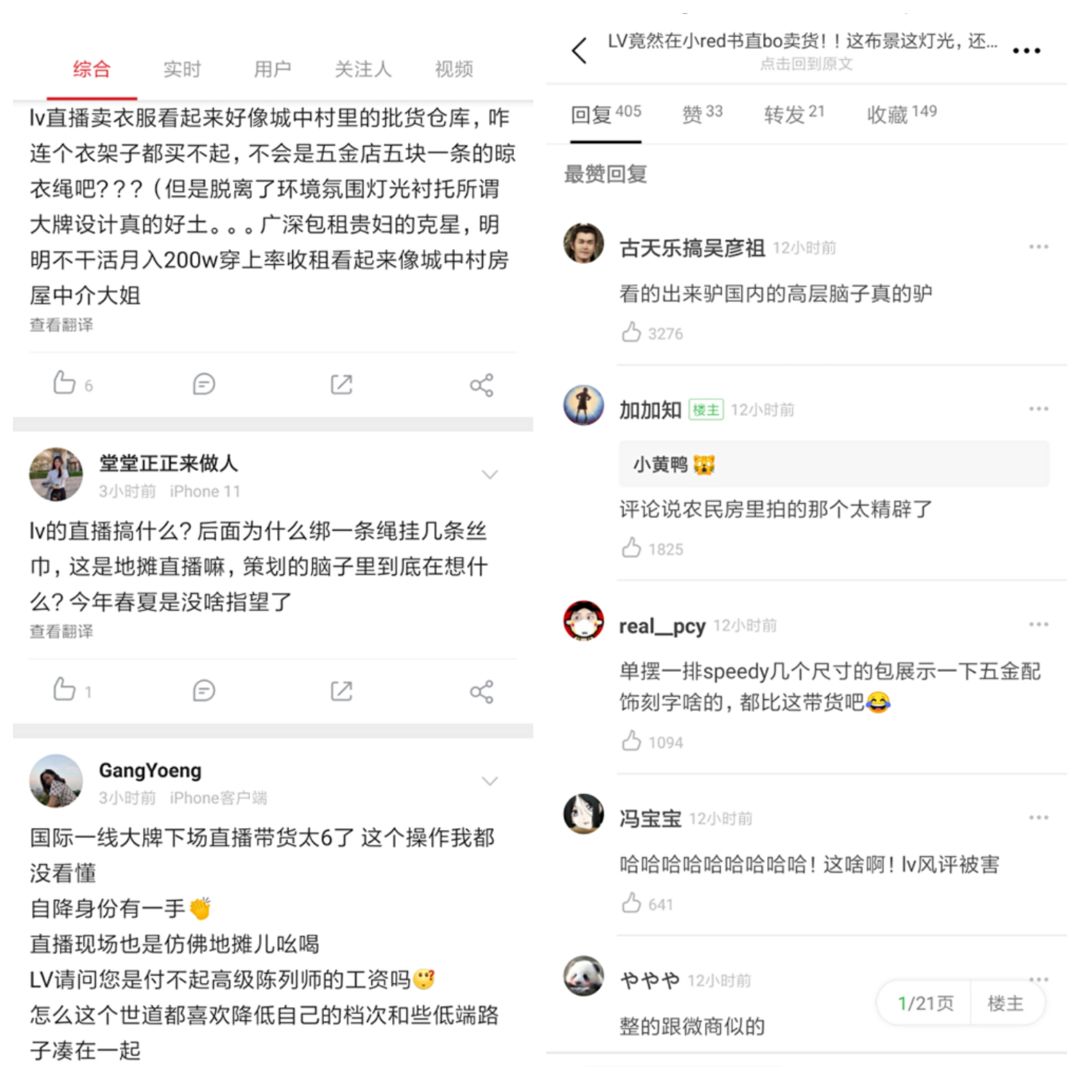 不过,与上述热闹场面同时存在的是,LV昨晚的直播间尤其布景、打光等备受争议。有网友直接在评论里说“low”,有人认为“有点差,不符合品牌形象”,还有人质疑“能弄得洋气点吗”。