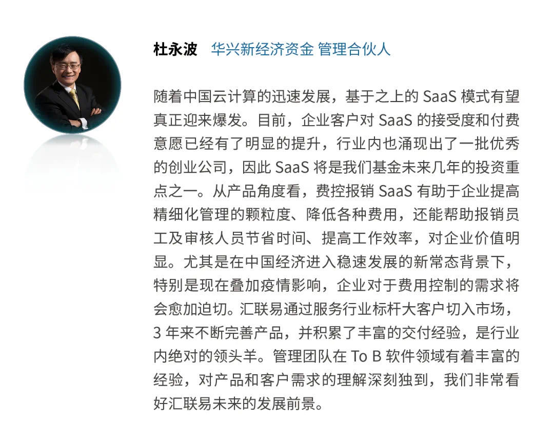 凭借在智能报销和费控领域的沉淀,更基于对用户需求的不断洞察和产品升级的持续打磨,汇联易才获得了更多投资方的肯定和信任。