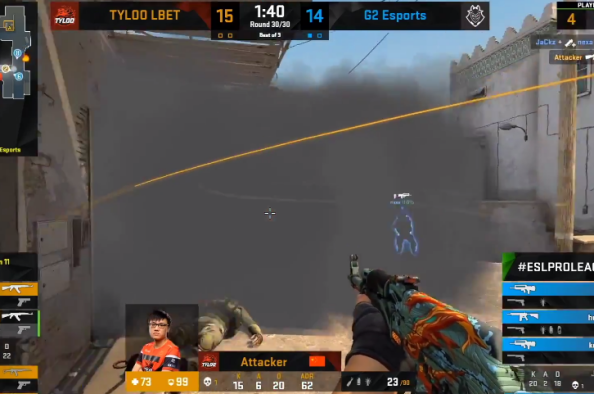 这几天的比赛下来,能看出来TYLOO对于这张图还是情有独钟,但是在配合上依旧是缺少灵活性,战术配合上有着明显的漏洞。通常在开局时就面临少打多的情况。赢下手枪局后对面G2的强起刚枪,又发挥了自己的传统,在枪械优势的情况下输掉了对局。最终比分以16:7被G2火速拿下。