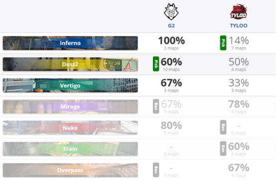 EPL的比赛现在来到了C组的第三轮对决,对阵双方分别是来自中国的TYLOO战队和来自法国的G2战队。经过一轮BP后。来到了图一Inferno。此前天禄战绩不佳,特地去乌克兰集训了一波,虽然出现希望渺茫,但是他们还是没有打算放弃。