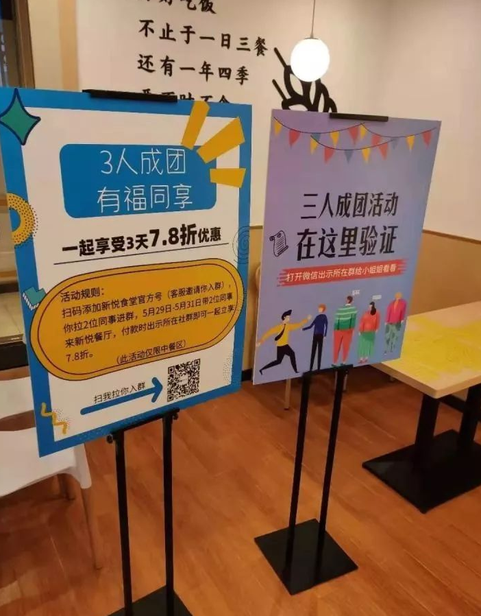 ③ 让在群内的客人拉同事进群,在餐厅午餐前,3人一起到餐厅门口出示微信,证明自己在群里即可领取7.5折证明