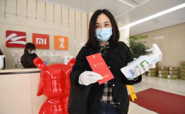 小米武汉总部今日正式复工,首批到岗上班的同事们都收到了“防疫关爱礼包”(口罩、酒精、洗手液、开工红包 )。