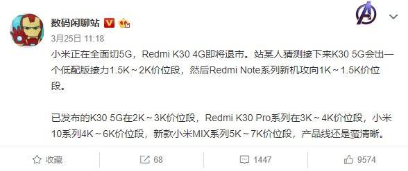 从已知的这些参数可以看出,这款小米手机肯定不是定位于中高端的,而另外也有微博的知名数码博主爆料小米将全面铺展5G手机市场,将会推出2000元左右的5G手机接力红米K30,红米Note系列再继续下探。