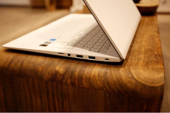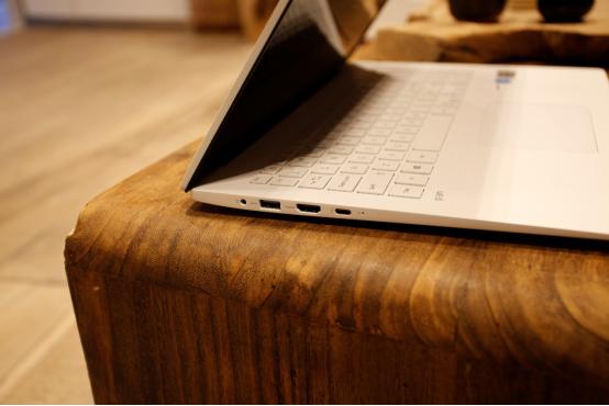 很多轻薄本在设计时,往往减少了接口数量和种类,因此用户需要购买各种转接设备才能满足需求。LG gram 17Z90N则拥有非常完备的接口配置,机身左侧分别布置有电源接口、USB-A、HDMI和支持雷电3协议的Type-C接口。