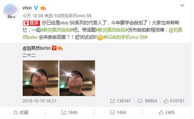 今天上午,vivo官方还“调侃”了刘昊然的自拍照,并且发起了一起#教刘昊然自拍#的微博话题互动。据说发布自拍教程微博还有机会获得刘昊然的亲自回复,粉丝们瞬间“沸腾”,微博话题热度瞬间飙升,可见其受欢迎程度。在刘昊然的倾情代言下,势必会给vivo S6带来更多的青春活力,二者的结合会产生怎样的效果,令人期待!