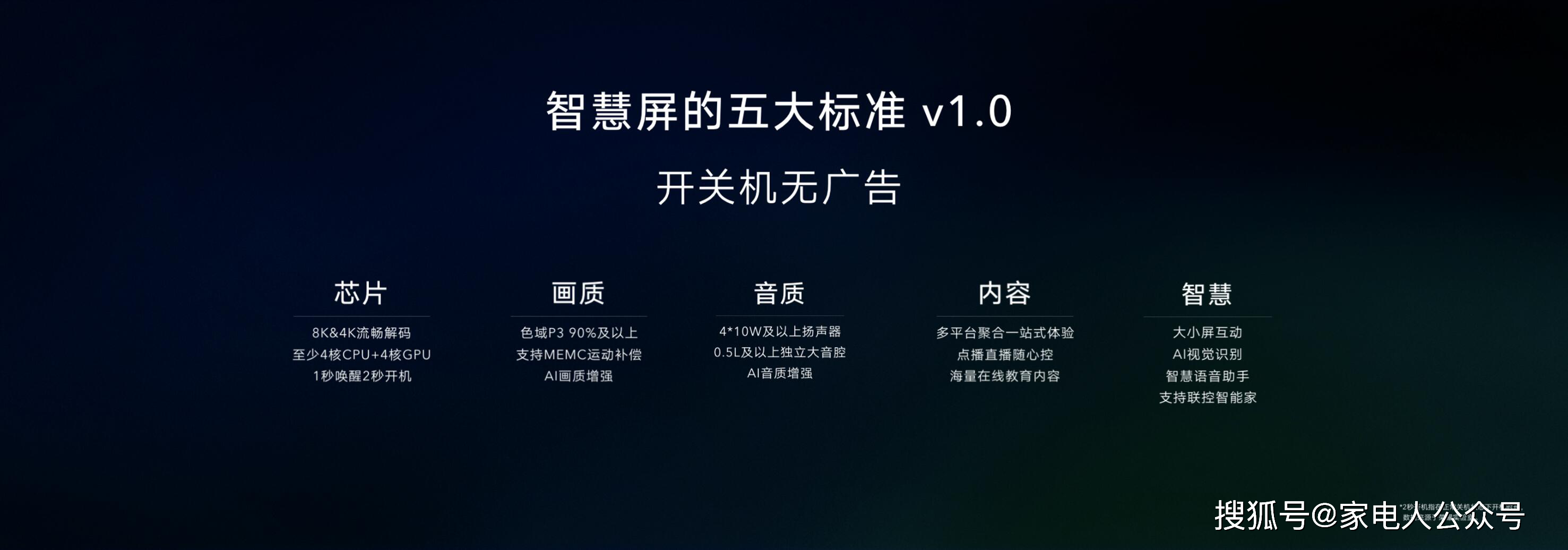 首先在荣耀看来,智慧屏好产品“五大标准”中最重要的就是拥有一颗好芯片。作为智慧屏最核心的“大脑”,芯片关系着智慧屏产品各个方面的综合能力。而一颗好的芯片,它至少应达到4核CPU+4核GPU配置、支持8K、4K流畅解码,能够做到1秒唤醒,2秒开机。