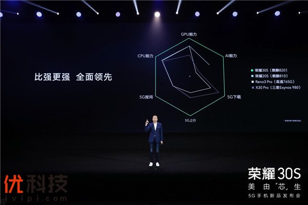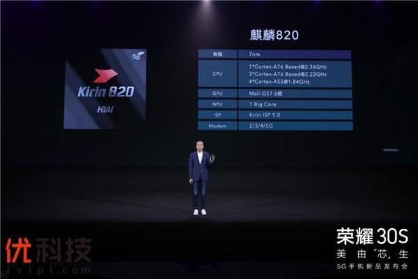 荣耀总裁赵明表示“麒麟820是一代5G神U,我们希望将搭载麒麟820的荣耀30S打造为行业首款真正意义上的、能够加速5G手机市场普及的标志性机型,通过技术上的降维打击,掀起一场5G普及风暴”,“荣耀30S不仅为更多年轻人提前带来更全面的5G旗舰体验,也是一款能让更多用户感受5G时代领先科技的里程碑产品。“
