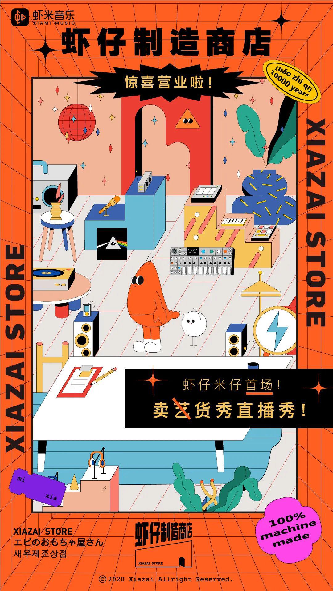 3月30日中午12点,虾米音乐为平台吉祥物虾仔和米仔举行了首场名为“虾仔制造商店”的直播带货首秀。