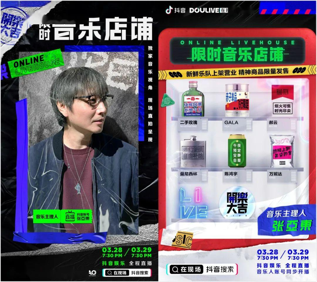 厂牌邀请张亚东担纲音乐店铺主理人,带来直播首秀,同时召集二手玫瑰、盘尼西林、郝云、万妮达、GALA乐队、陈鸿宇等音乐人作为音乐合伙人,连续两天呈现线上livehouse直播活动。