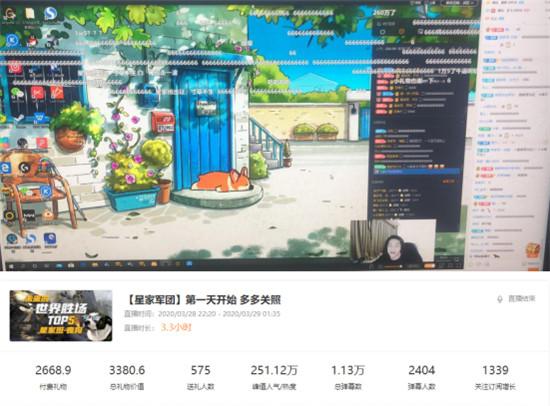 3月30日星家军团爱拍丧狗在虎牙开启了首秀,作为星家军团的当家级主播,狗哥直播间人气也是瞬间爆棚,不到半小时围观人气就超过了250万。