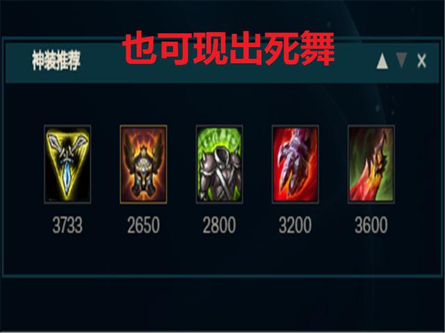 出门装选择腐败药水,随后做出三相之力。人马的AQ可以频繁触发三相的耀光效果,同时三相狂暴被动带来的移速加成对人马提升巨大。随后敌方物理英雄较多可以选择正义荣耀提升进场能力以及坦度。法师较多可以先做出振奋提升持续作战能力。优势的情况下可以第二件就做出改版后的死亡之舞增强回复能力。最后神装推荐为三速鞋、三相、正义荣耀、振奋、血手、死亡之舞。