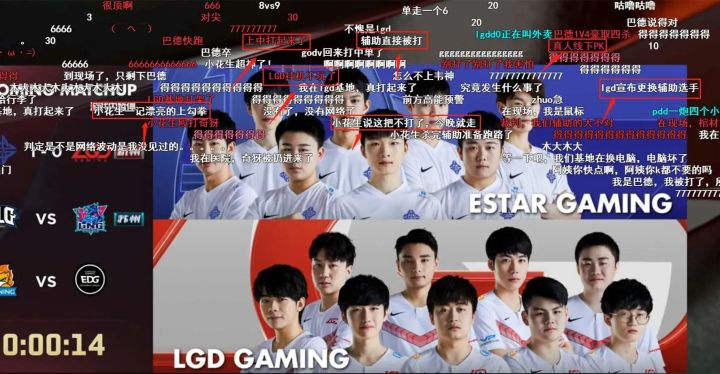 比如在3月12日LGD与Estar的比赛中,在赛局尚未明朗的时候,LGD五位队员突然集体掉线,这在LPL的历史上还是首次。后续查明,掉线的原因是LGD方面的网络问题。