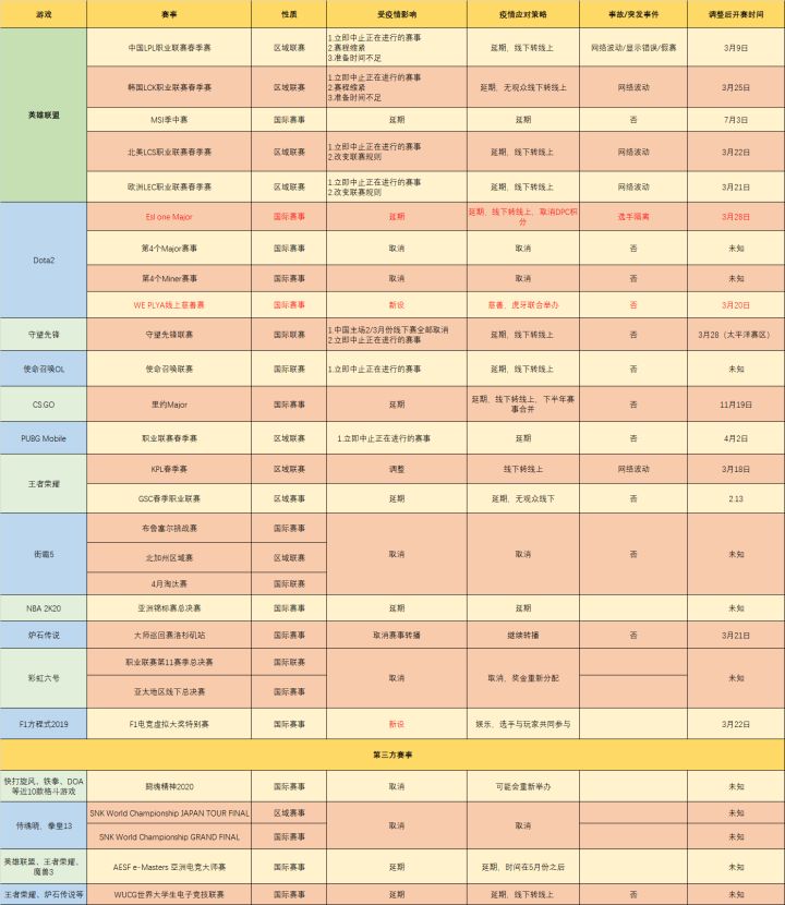 谁都有问题,谁也跑不了。茶馆梳理了一些因为疫情而受到影响的电竞赛事,内容如下: