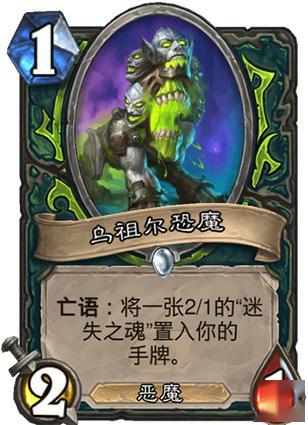 乌祖尔恐魔 1分这大概是恶魔猎手麾下最差的1费随从了。恶魔猎手有不少的优质1费,因此乌祖尔恐魔大概很难找到自己的位置。这玩意就是个破产版火羽精灵,我们对它并不怎么感冒。