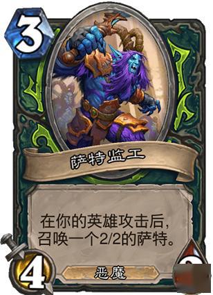 萨特监工 1分很弱。就算准时拍下,而且还能攻击一次触发特效,所产生的场面也并没有多么厉害,很容易就会被对手解掉。而如果是4费拍下再加一次英雄技能,那就更是弱鸡。总之这卡就是不行。