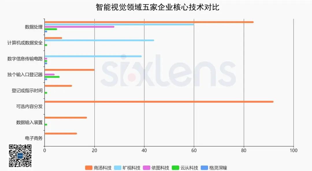 此外,商汤科技的技术优势还体现在数据处理、数据输入装置、可选内容分发、电子商务等技术方向投入更多,可以理解,这些技术更多是为了满足其业务覆盖的智慧城市、智能手机、泛文化娱乐、智能汽车、智慧健康、智慧商业与金融、教育、广告等等领域。