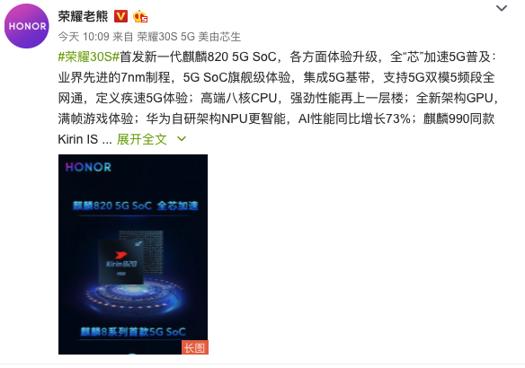 恰如荣耀总裁赵明所讲:“我们是把麒麟820这样一款超级强大、可以带来5G标杆式体验、基于上一代810有大幅度升级的芯片用在了30S上……打造中端机的标杆”。