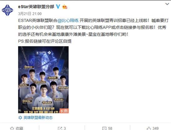 最近PDD又有了新动作,他的YM战队完成了合体,以ESTAR战队加入到了LPL赛场上,前几天ESTAR还与比心陪练达成合作进行了一场青训招募活动,号召国内大神、有潜力的玩家来报名,获取通往LPL的机会。