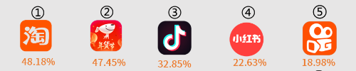 据艾媒咨询数据显示,受访者常用直播购物的直播平台排行榜前五名分别是淘宝、京东、抖音、小红书和快手,比例分别为48.18%、47.45%、32.85%、22.63%和18.98%。