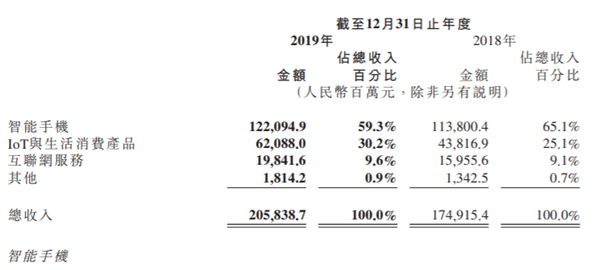 财报显示,2019年小米智能手机部分收入达到人民币1221亿元,同比增长7.3%;2019年第四季度智能手机部分收入达308亿元,同比增长22.8%;2019年小米智能手机销量达到1.23亿部,2019年第四季度智能手机销量达到0.326亿部,同比增长30.5%,环比实现微增。