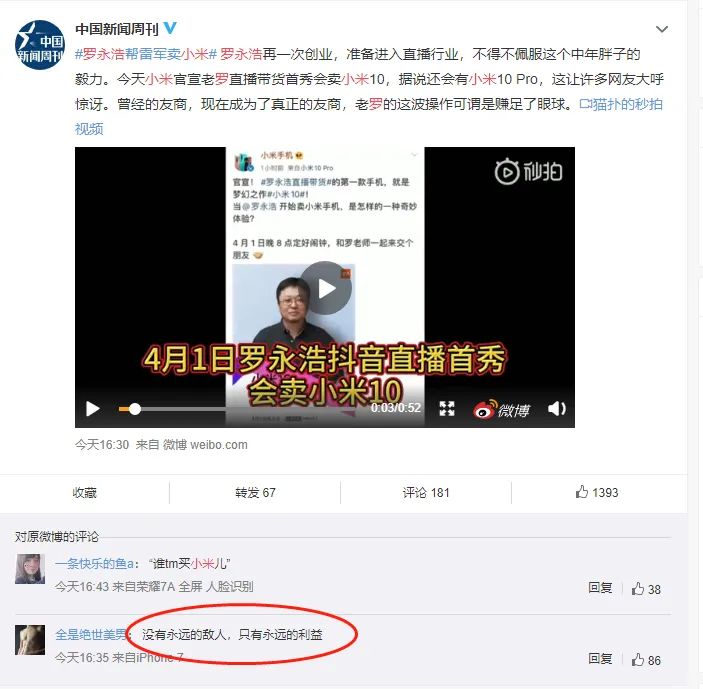值得一提的是,网红的锤子科技创始人罗永浩,4月1日进军直播行业,抖音首秀为小米手机带货。